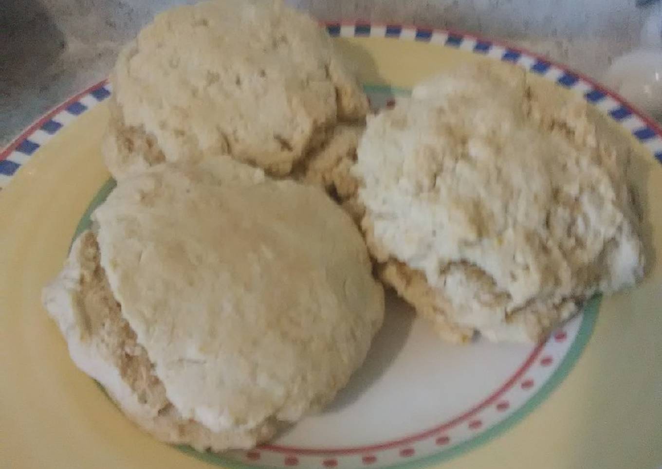 - Mix in "milk". Form 8, 1 inch thick, biscuits. *I made mine huge. I only got 4 out of this mixture.*
